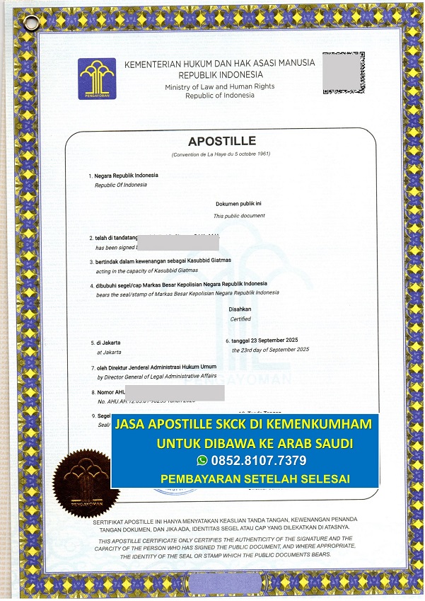 Untuk Informasi Biaya Sertifikat Apostille SKCK di Kemenkumham untuk dibawa ke Arab Saudi Silakan Hubungi :