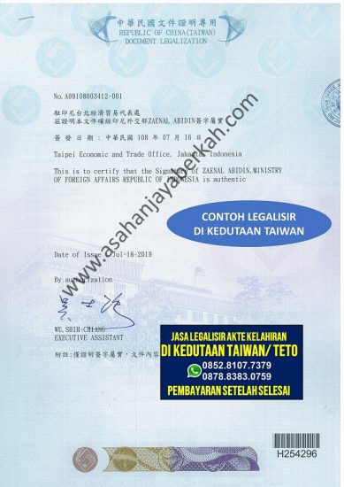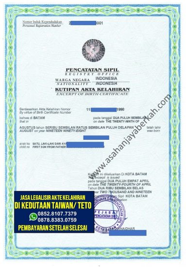 PT. Asahan Jaya Berkah Adalah Satu-satunya Biro Jasa Legalisir Akte Kelahiran di Kedutaan Taiwan/ Teto Tepercaya dan Berpengalaman. Melayani Jasa Terjemah Bahasa Inggris, dan Legalisir Akte Kelahiran di Notaris, Legalisir Akte Kelahiran Kementerian Hukum dan HAM, Legalisir Akte Lahir di Kementerian Luar Negeri dan Legalisir Akte Kelahiran di Kedutaan Taiwan/ Teto.