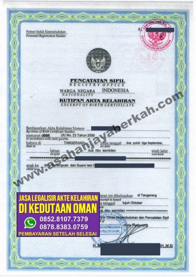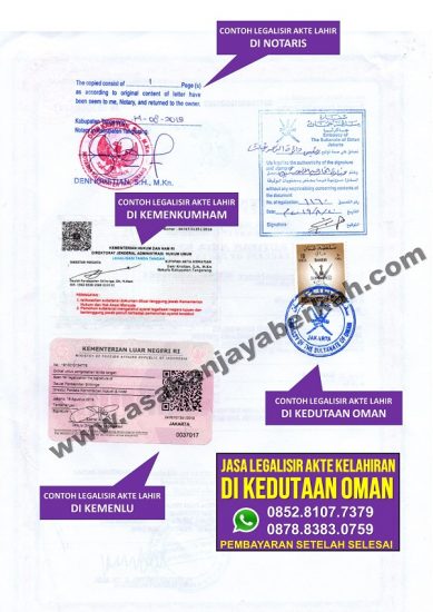 Catatan: Akte Kelahiran akan kami Legalisir di Notaris Kementerian Hukum dan HAM, Kementerian Luar Negeri, Kemenlu dan Kedutaan Oman.